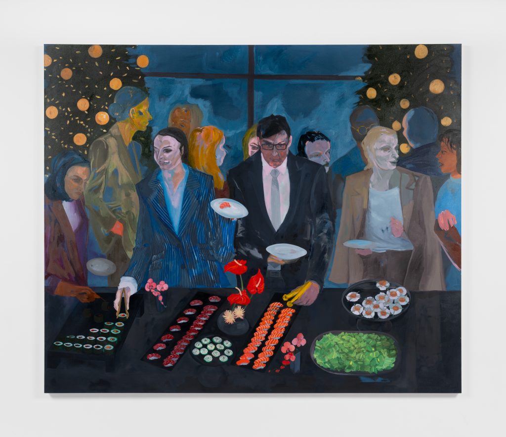 Georgia Gardner Gray, The Christmas Party, 2025, oil on canvas, 200×240 cm. Courtesy of the artist and Sadie Coles HQ, London. Photo: Joerg Lohse